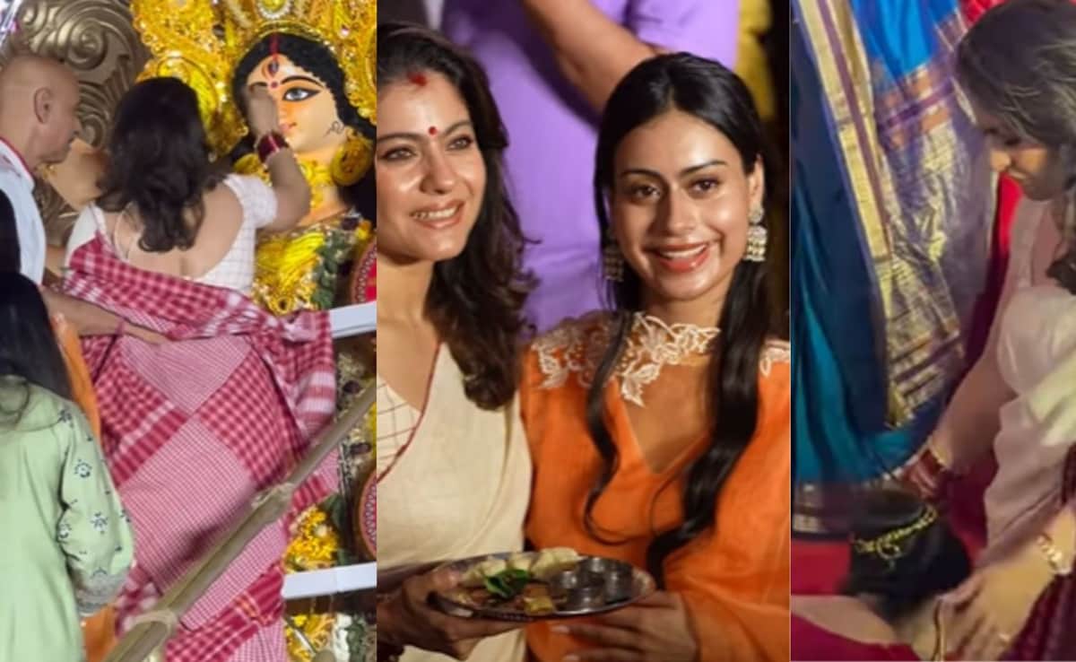 In a viral video, Tanisha is seen touching elder sister Kajol’s feet