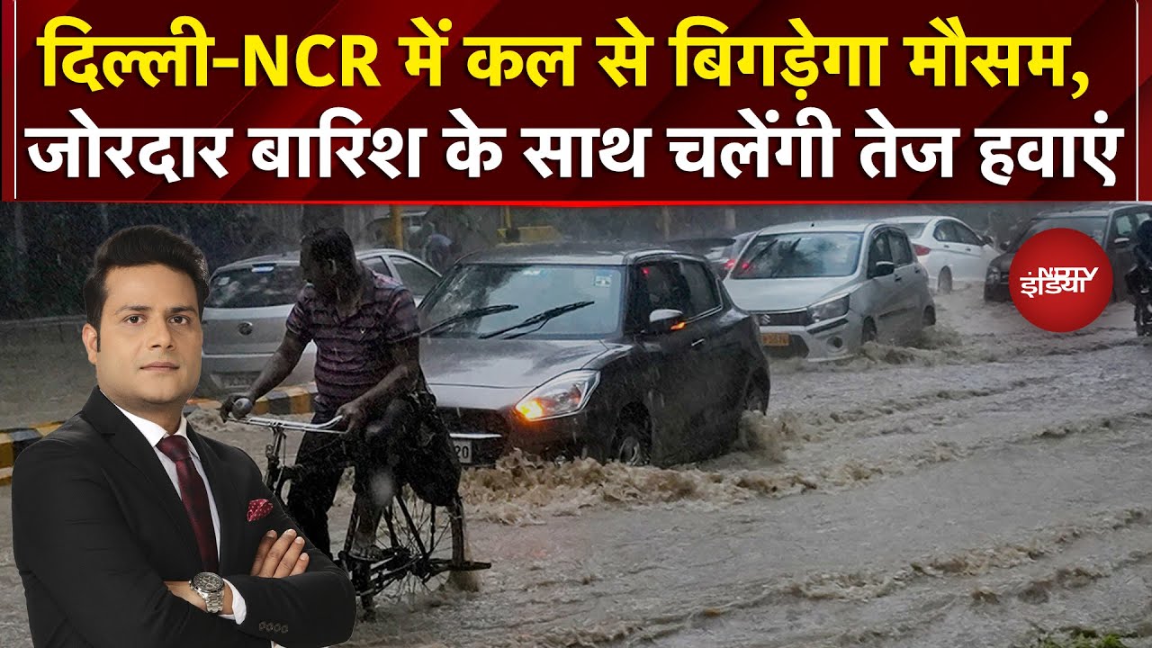Delhi Rain: कल से दिल्ली-NCR में मौसम बदलने का पूर्वानुमान है। ज़ोरदार बारिश के साथ तेज़ हवाएं चलेंगी। ये बदलाव वेस्टर्न डिस्टर्बेंस की वजह से होगा।