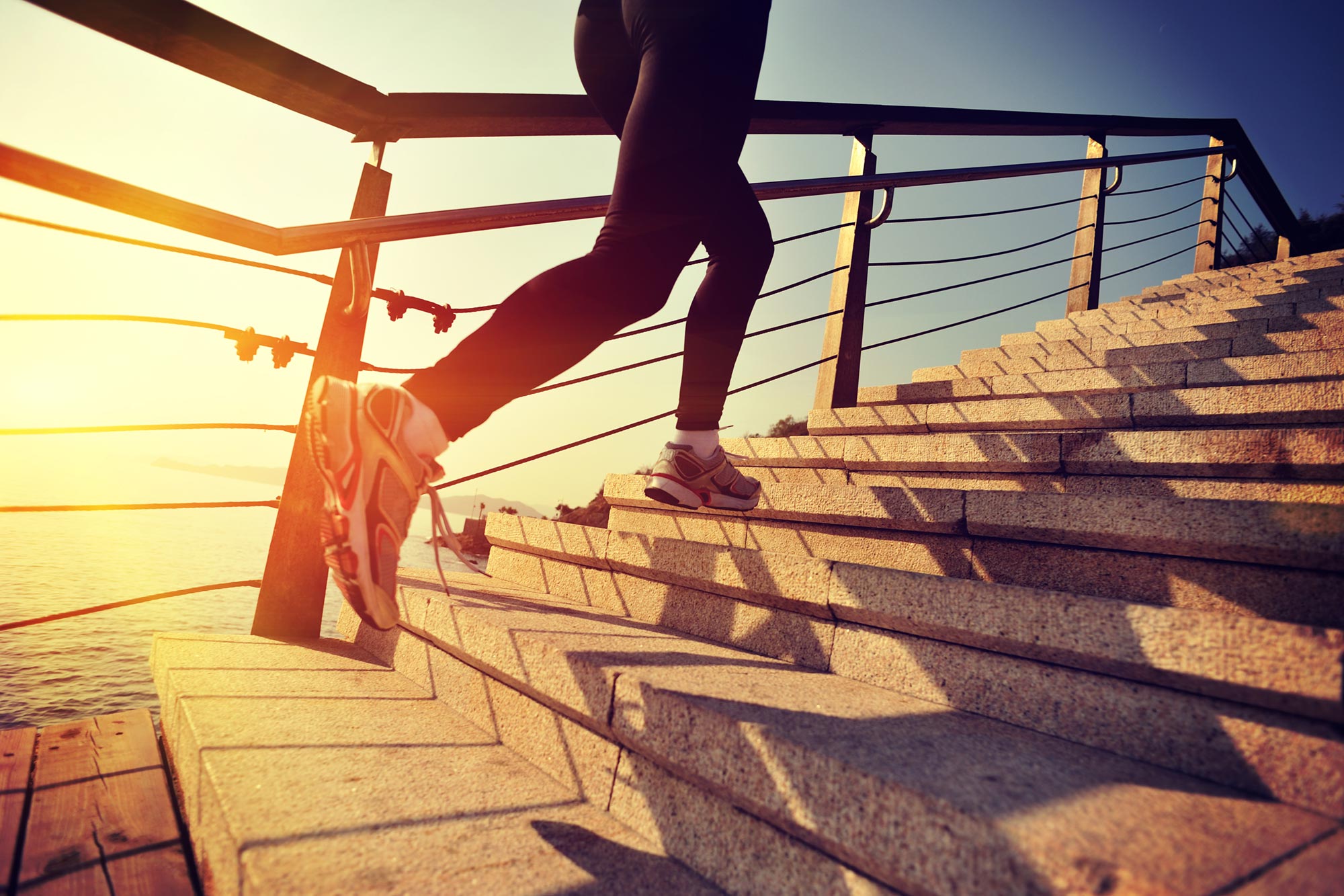 Healthy Lifestyle Sports Woman Running Up Stairs Sunrise