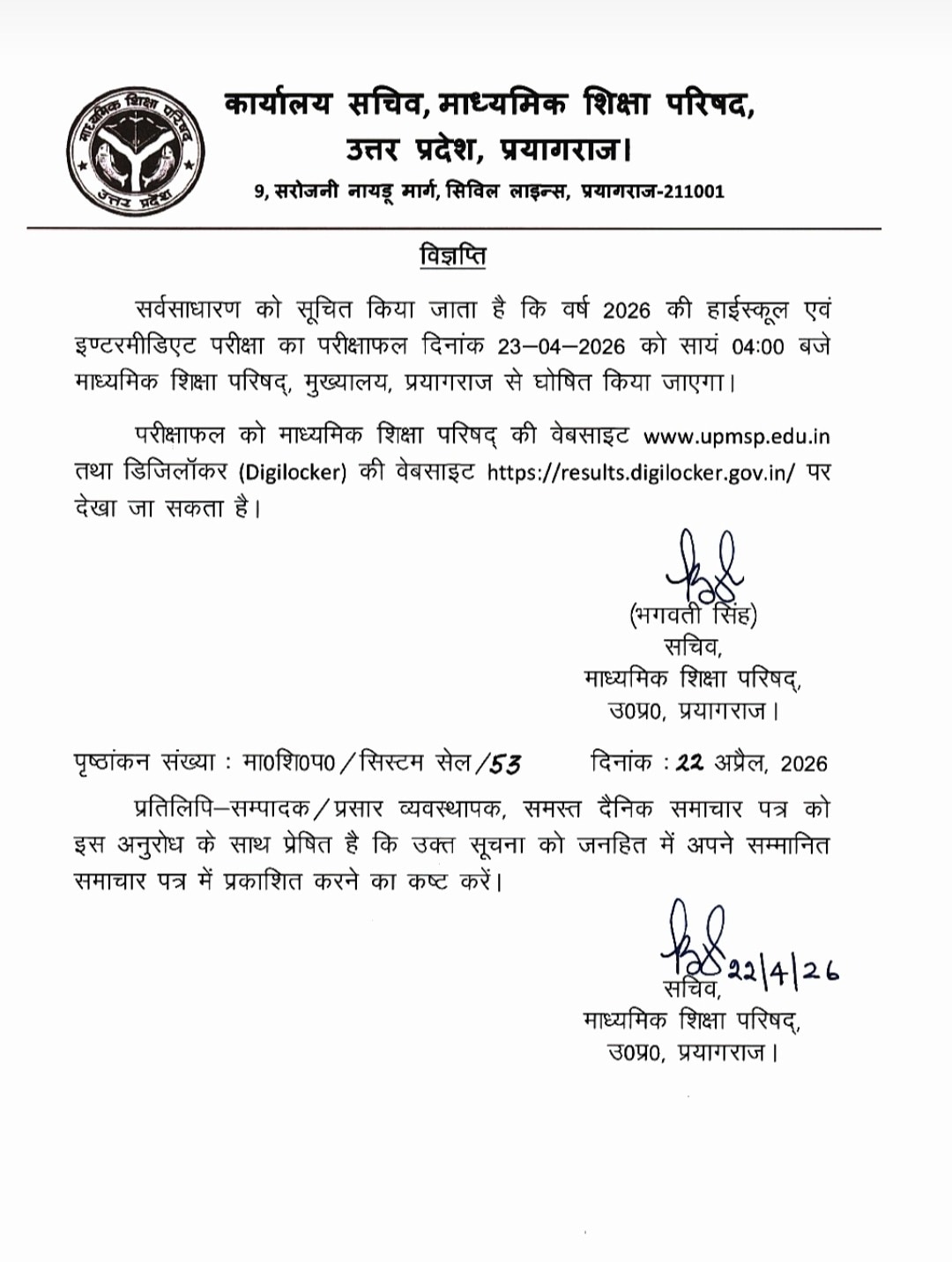 यह भी पढ़ें: UP Board 12th Result 2026 Live: आज आएगा यूपी बोर्ड 12वीं का रिजल्ट, कैसे सबसे पहले देख पाएंगे अपना स्कोरकार्ड